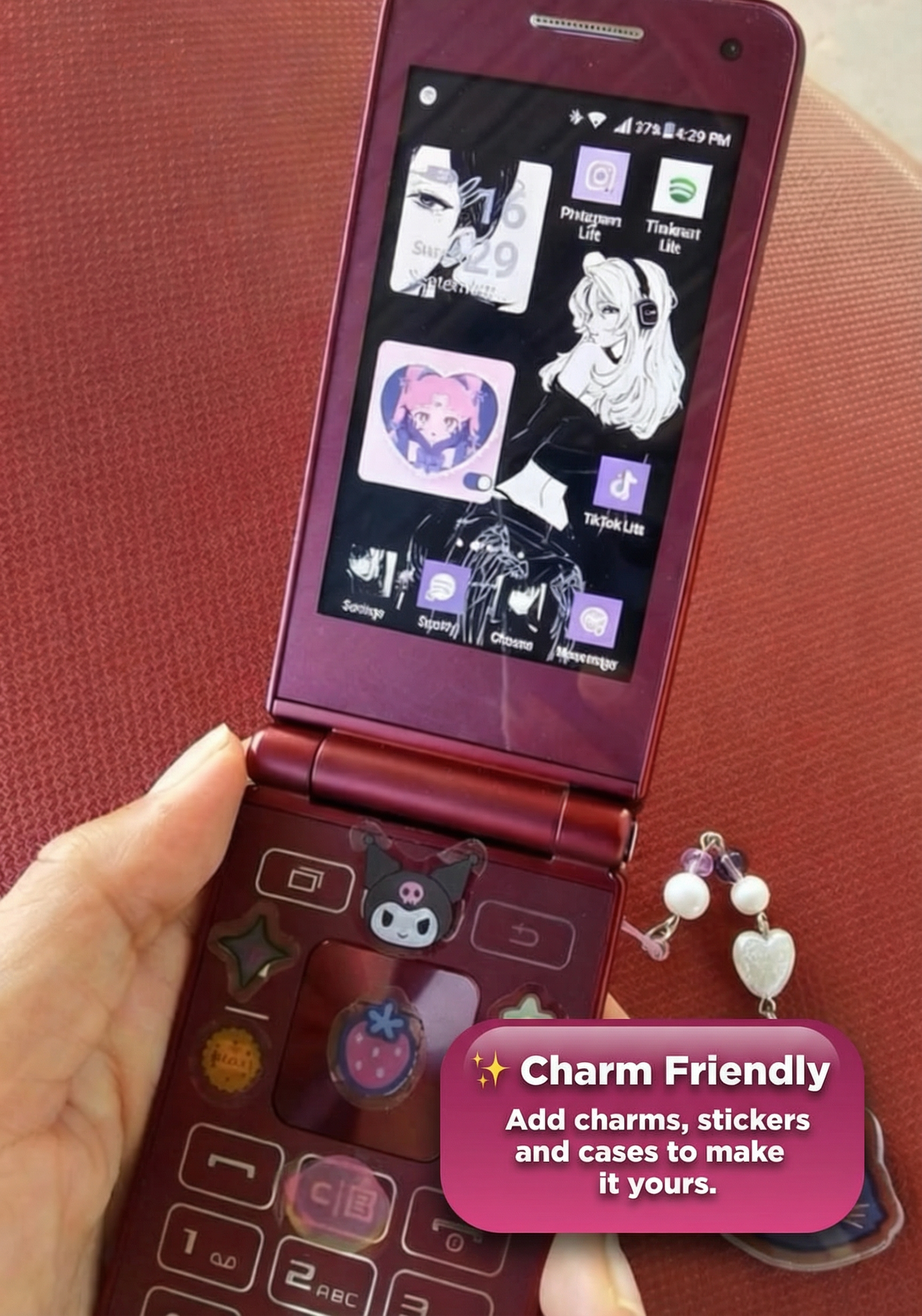 Yes, EchoFlip features a charm- and sticker-friendly shell for endless personalization